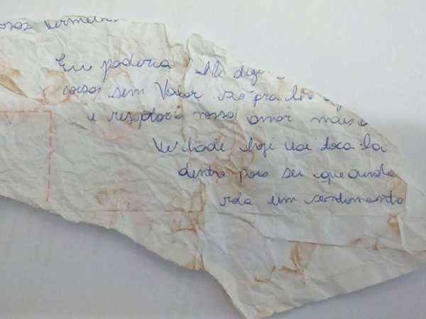 Bilhete foi encontrado próximo ao corpo de Fabiana/Foto: Polícia Civil/Divulgação