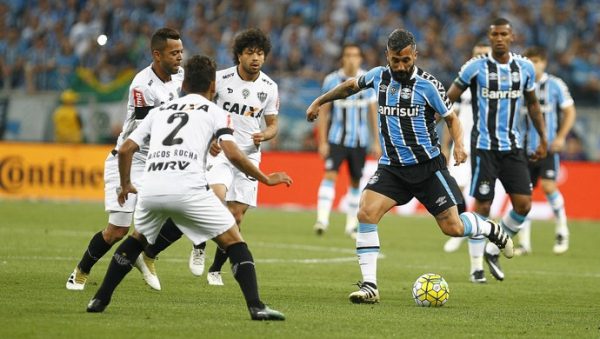 Desde o início, o Galo esboçou uma reação. Júnior Urso, de cabeça, e Pratto e Luan, em chutes de fora da área. Em todas, a bola passou perto. O Grêmio passou a sair para o jogo, mas sem assustar muito. Na primeira boa chance, numa cobrança de falta de Douglas, a bola saiu por cima.