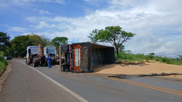 Nesta sexta-feira, 02 de Janeiro de 2026, um caminhão semi-reboques carregado com soja tombou na BR-352, em Patos de Minas, após perder a estabilidade em um trecho de curva da rodovia. A ocorrência foi atendida pela Polícia Militar Rodoviária.