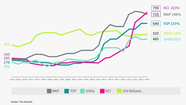 Evolução do preço dos fertilizantes (nov/19 a set/21) mostra alta acelerada a partir de janeiro deste ano – AMA Brasil
