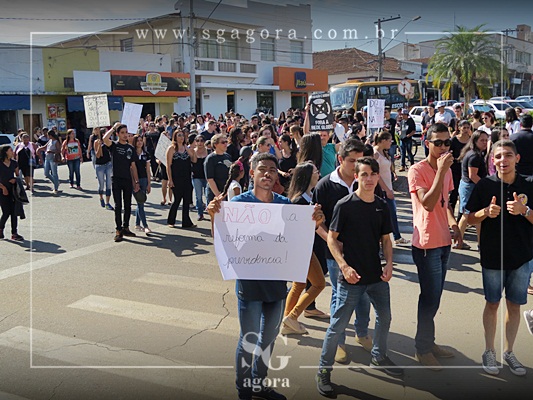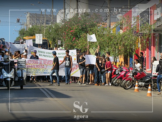 “Vem pra rua, a luta também é sua!” Com os pulmões cheios de vida e de protesto, na manhã desta última sexta-feira (31/03), servidores da educação, trabalhadores Sangotardenses, alunos e demais pessoas da cidade, participaram da terceira passeata de manifestação contra a Reforma da Previdência, Terceirização de Empresas e Corrupção no País em São Gotardo. De acordo com apuração realizada pelo Portal SG AGORA, cerca de 500 pessoas participaram da caminhada pacífica contra as mudanças propostas pelo Governo Temer.
