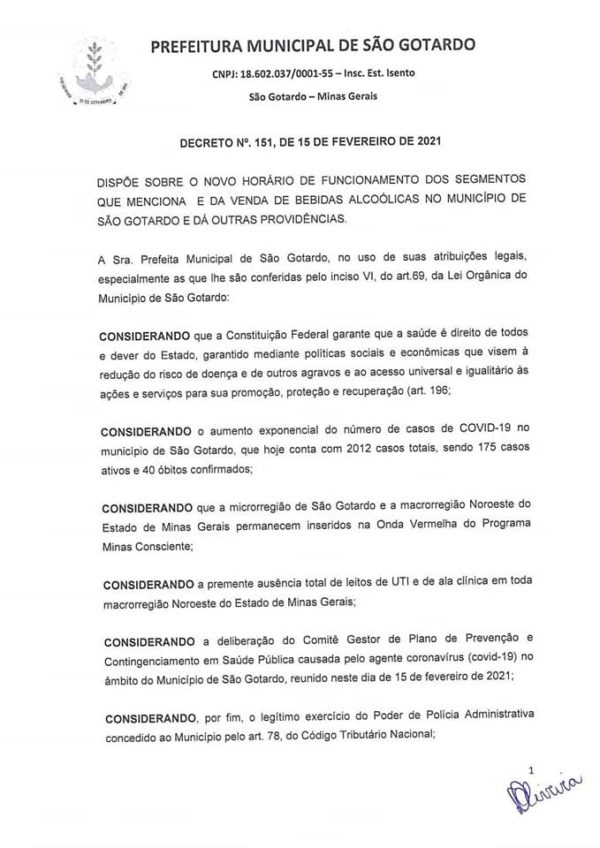 Segundo informações do Comitê de Combate ao Covid-19 no Município de São Gotardo, esta é a ultima tentativa para conter os casos de Coronavírus na cidade, antes de medidas mais drásticas como o LOCKDOWN. De acordo com os membros do Comitê, quase todos os estabelecimentos comerciais de São Gotardo de todos os segmentos, estão fazendo sua parte neste delicado momento de pandemia. Porem, devido a alguns estabelecimentos comerciais e parte da população em geral que não estão contribuído, tais medidas mais severas precisaram ser tomadas.