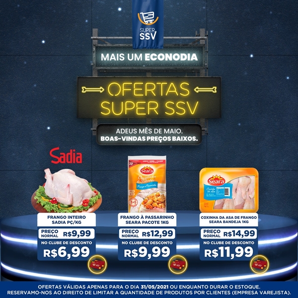 Vale lembrar que, alguns dos itens publicados na promoção, possuem descontos exclusivos para os clientes adeptos do Cartão Clube de Vantagens SSV (para adquirir o cartão, basta solicitá-lo na recepção do supermercado apresentando seus documentos pessoais e um comprovante de residência). Vale lembrar que o cartão não possui taxa de adesão ou anuidade e também não se trata de um cartão de crédito ou débito, sendo apenas uma forma de adquirir mais descontos.