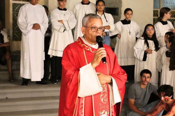 Monsenhor Vanderley enalteceu a presença dos fiéis na encenação da morte de Cristo (FOTO: SG AGORA)