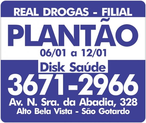 Leitores, confiram as FARMÁCIAS DE PLANTÃO em São Gotardo durante esta semana (CONFIRA TODAS AS FARMÁCIAS NO FINAL DA REPORTAGEM). O plantão dura até o dia 01 de Fevereiro de 2019 e as farmácias ficam abertas até as 22:00 horas.