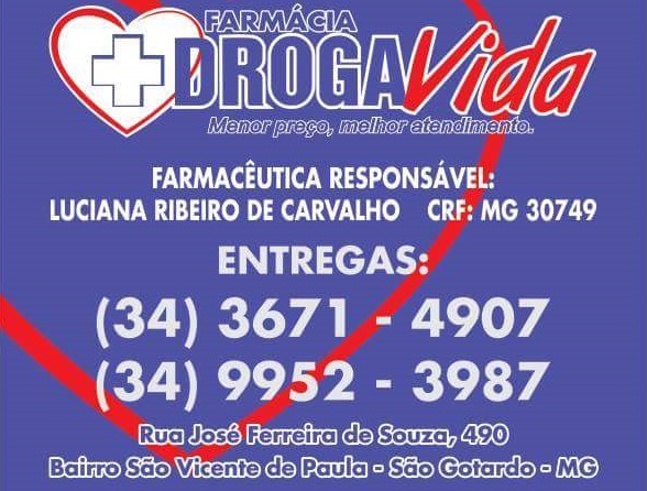 Leitores, confiram as FARMÁCIAS DE PLANTÃO em São Gotardo durante esta semana (CONFIRA TODAS AS FARMÁCIAS DE PLANTÃO NO FINAL DESTA REPORTAGEM). O plantão começa neste sábado (03/10) e dura até o dia 09 de Outubro de 2020.
