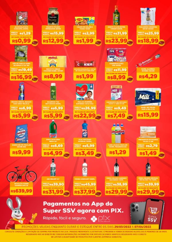 Recados importantes sobre a promoção: A venda de bebidas alcoólicas, só será permitida para pessoas maiores de 18 anos de idade. Alguns dos itens publicados na promoção, possuem descontos exclusivos para os clientes adeptos do Cartão Clube de Vantagens SSV (para adquirir o cartão, basta solicitá-lo na recepção do supermercado apresentando seus documentos pessoais e um comprovante de residência). O cartão não possui taxa de adesão ou anuidade e também não se trata de um cartão de crédito ou débito, sendo apenas uma forma de adquirir mais descontos.