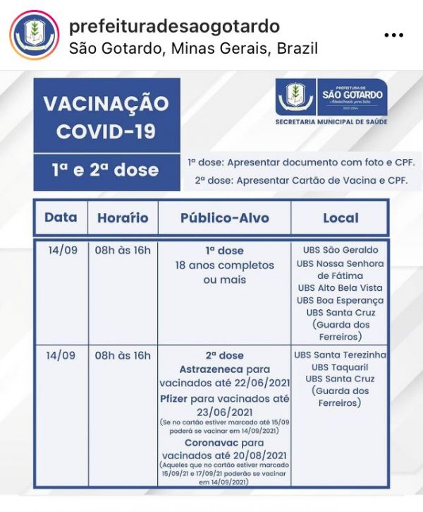 Calendário de vacina em São Gotardo: