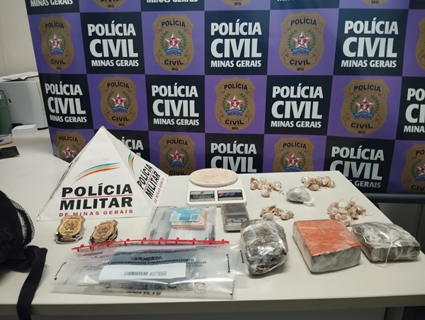 Durante as buscas, a equipe logrou êxito em apreender os seguintes materiais: significativa quantidade de maconha (aproximadamente 1kg), 36 pedras de crack (aproximadamente 215g), 02 duas balanças de precisão, além de telefones celulares e quantia em dinheiro.