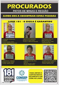 Na manhã desta quarta-feira (17), foi divulgado pela 10ª Região de Polícia Militar, a lista dos foragidos mais procurados pela Justiça em Patos de Minas e região. Uma iniciativa que também poderia ser implantada em São Gotardo.