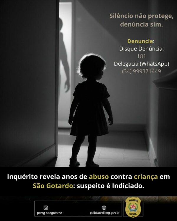 0 Comentários “POLÍCIA CIVIL: Inquérito revela anos de abuso contra criança em São Gotardo. Suspeito é indiciado”