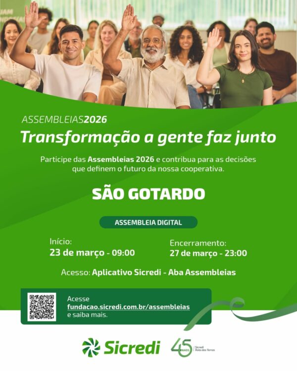 0 Comentários “Sicredi Rota das Terras promove Assembleias 2026 e convida cooperados de São Gotardo a participarem das decisões da cooperativa”