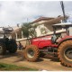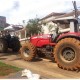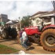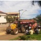 Um caminhão subia a Avenida Rui Barbosa transportando um Trator, quando a corrente de segurança arrebentou e o Trator caiu em pé na Avenida Rui Barbosa.
